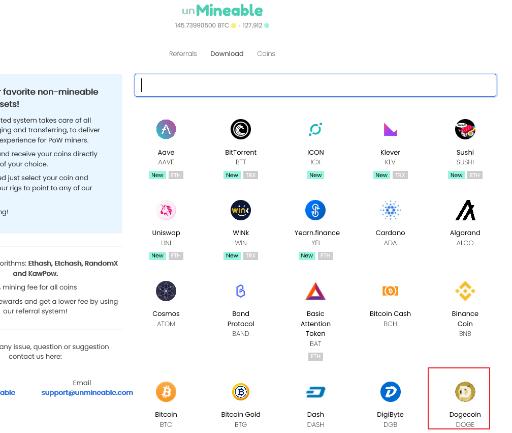 접속하고 아래 그림처럼 Dogecoin 클릭