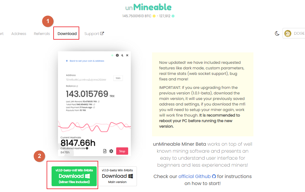 Dogecoin 클릭후 나온 화면에서 "Download" 클릭 후 프로그램을 다운로드 합니다.